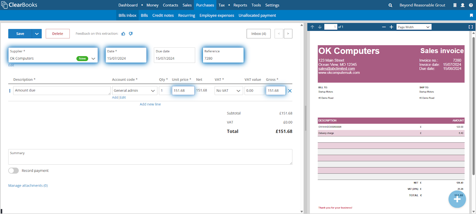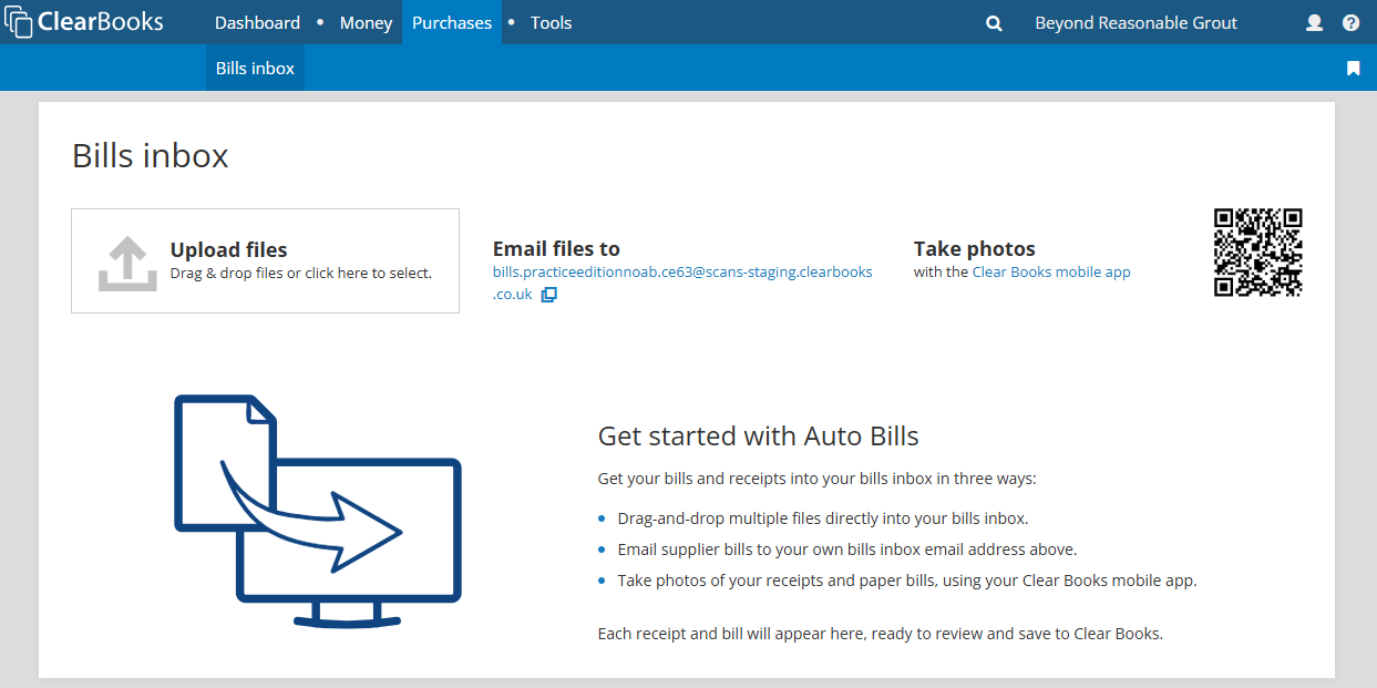 After the email has been received by Clear Books, it will appear in the bills inbox ready for the practice user to review and save.