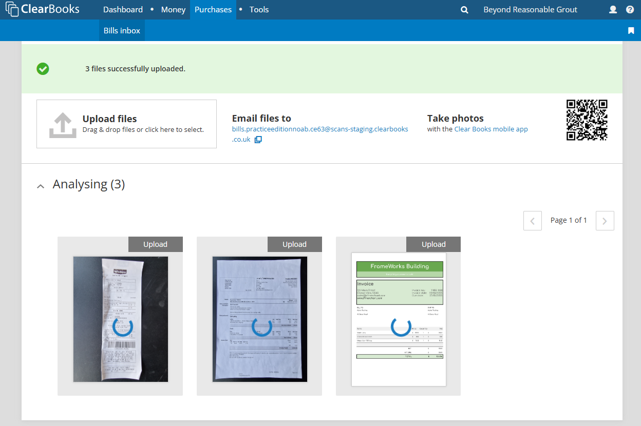 The selected files will be uploaded to the bills inbox and be analysed immediately.