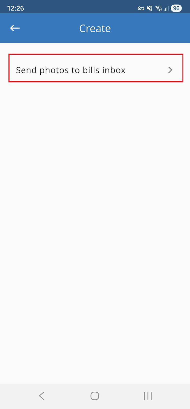 In the mobile app, use the quick add button and select “Send photos to bills inbox”.